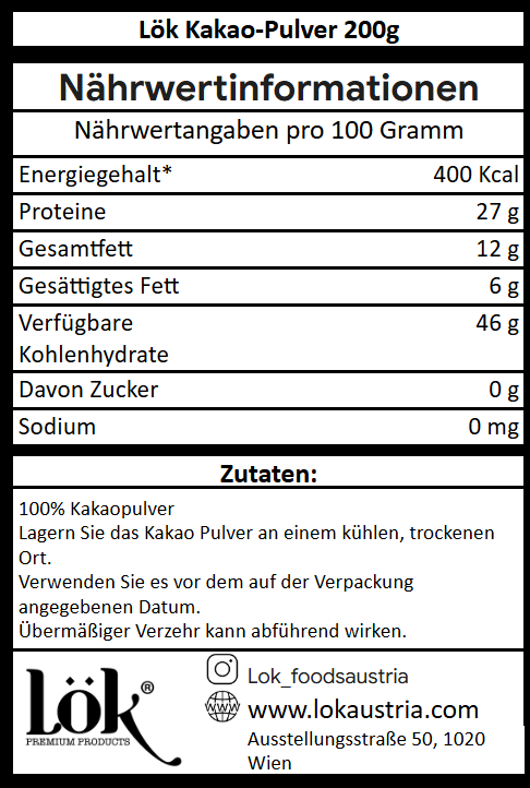 LÖK Kakaopulver 100% – Rohkakao aus Kolumbien | Zuckerfrei, Vegan, Glutenfrei
