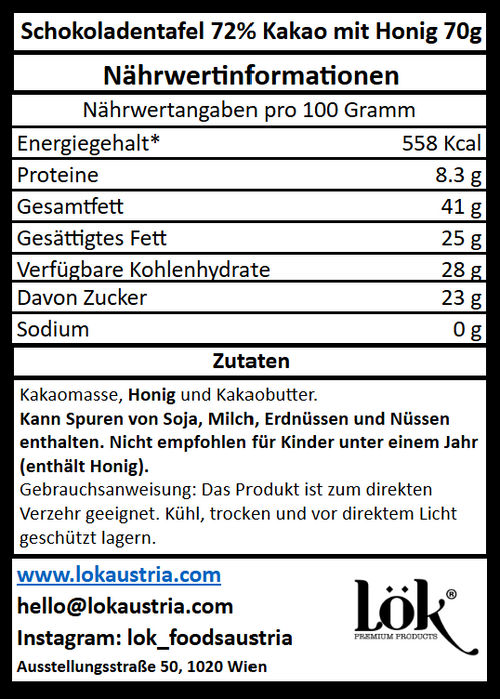 Zutaten: Kakaomasse, Honig, Kakaobutter, Vanilleextrakt