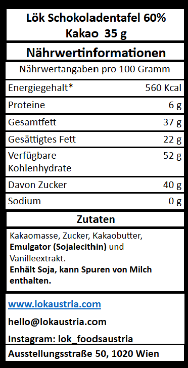 Zutaten: Kakaomasse, Rohrzucker, Kakaobutter, Sojalecithin, Vanilleextrakt