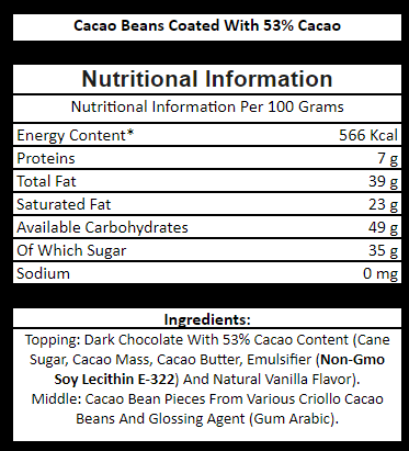 Cacao Nibs Covered with Dark Chocolate| 53% Cacao | 75g