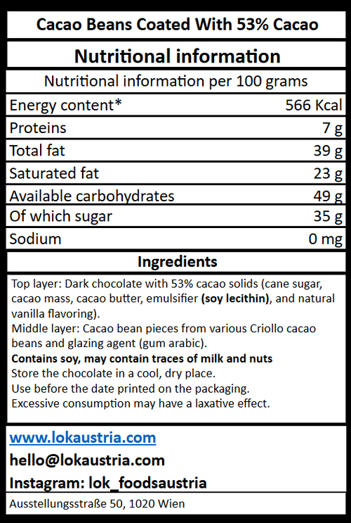 Indulge in the goodness of Lök Dark Chocolate Nibs, made from crunchy roasted cacao beans coated in rich 53% dark chocolate. These nibs are packed with antioxidants, fiber, and essential minerals, making them the ultimate superfood snack.