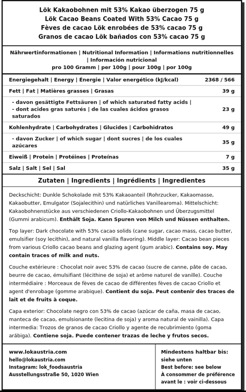 Indulge in the goodness of Lök Dark Chocolate Nibs, made from crunchy roasted cacao beans coated in rich 53% dark chocolate. These nibs are packed with antioxidants, fiber, and essential minerals, making them the ultimate superfood snack.