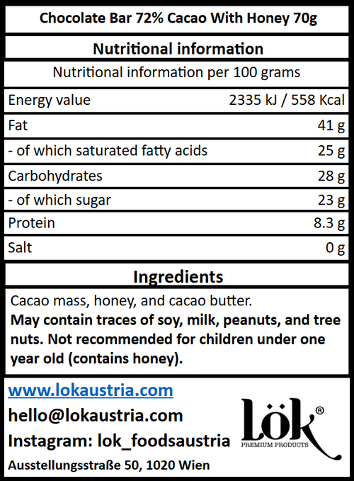 Ingredients: Cacao mass, honey, cacao butter, vanilla extract