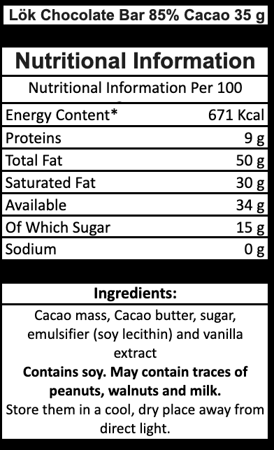 Delight in the bold and sophisticated flavors of Lök's 85% Dark Chocolate Bar. Made with exceptional fine-flavor cacao, this 35g bar offers an intense cocoa experience complemented by floral and subtle sweet notes, perfect for refined pairings.