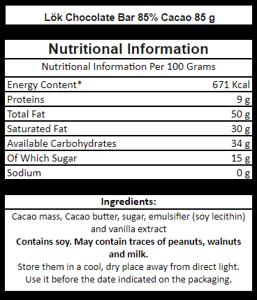 Delight in the bold and sophisticated flavors of Lök's 85% Dark Chocolate Bar. Made with exceptional fine-flavor cacao, this 85g bar offers an intense cocoa experience complemented by floral and subtle sweet notes, perfect for refined pairings.