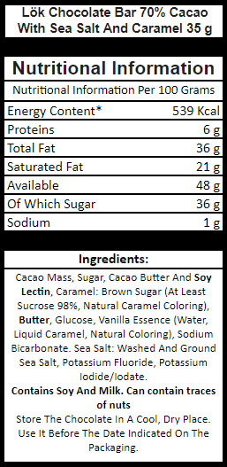 Discover the bold flavors of Lök Dark Chocolate Bark (70% Cacao) with Sea Salt & Caramel, where opposites attract. This 35g treat combines rich dark chocolate, smooth caramel swirls, and a sprinkle of sea salt, creating a delightful and unique flavor experience that will tantalize your taste buds.