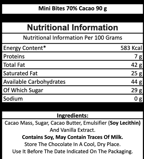 Dark Chocolate Mini Bites| 70% Cacao | 90g